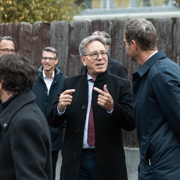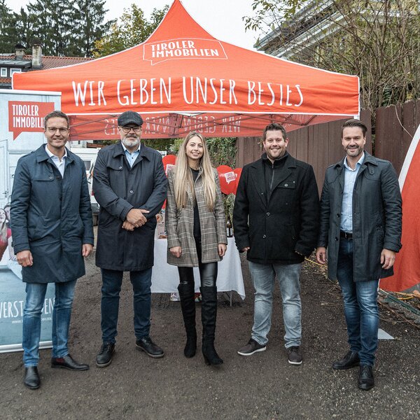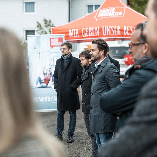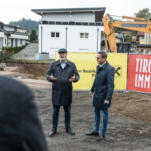 Gemeinsam mit Stefan Kaiserer und MitarbeiterInnen der Tiroler Immobilien begrüßte er Partner, VertreterInnen der Baufirma, der Raiffeisen Bezirksbank Kufstein und RLB Tirol AG, des Architektenbüros ao-architekten sowie als Ehrengast Kufsteins Bürgermeister Martin Krumschnabel.