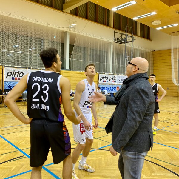 Unserem Stefan wurde dabei vor dem Spiel gegen Vienna United das neue Jersey überreicht und leitete im Anschluss durch den sogenannten „Jump-Ball“ den sportlichen Abend ein.