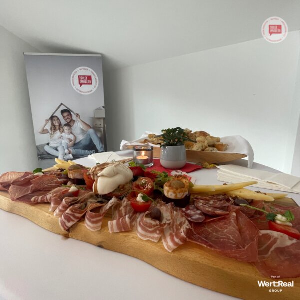 Die Übergabefeier endete mit einem festlichen Buffet, bei dem die neuen Bewohner die Gelegenheit hatten, sich untereinander und mit den Vertretern von Tiroler Immobilien auszutauschen.