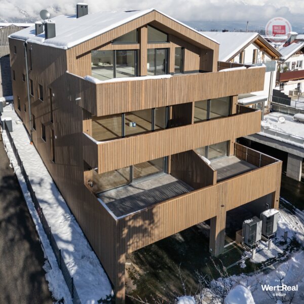 Das Projekt umfasst insgesamt fünf Eigentumswohnungen und präsentiert sich als architektonisches Juwel im grünen Vorort von Innsbruck. Besondere Highlights sind die beeindruckende Fassadengestaltung, die großzügige Raumaufteilung sowie die atemberaubende Penthousewohnung mit Blick über Götzens.