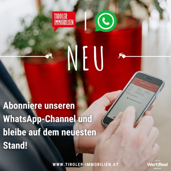 Nachdem WhatsApp die neue Kanalfunktion in über 150 Ländern ausgerollt hat, sind nun auch wir auf der beliebtesten Messaging-Plattform vertreten! Der Tiroler Immobilien WhatsApp-Channel ist die neueste Ergänzung zu unseren bereits bestehenden Social Media-Plattformen und verspricht Infos aus erster Hand.