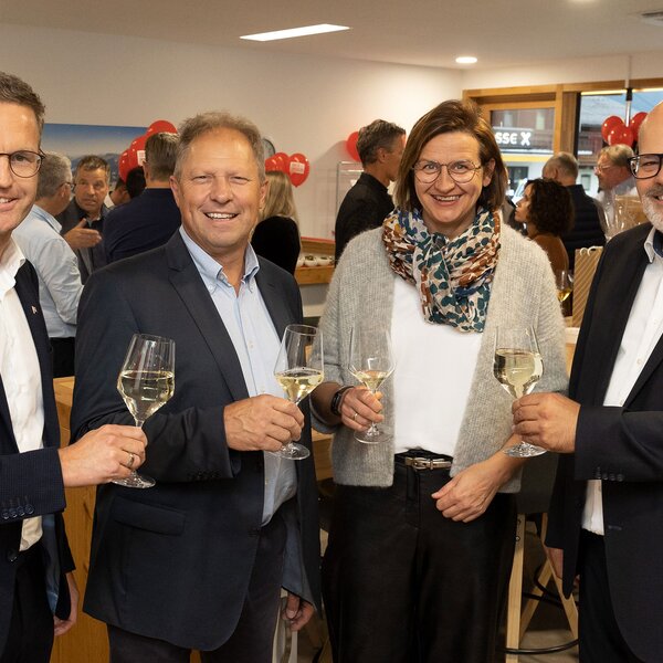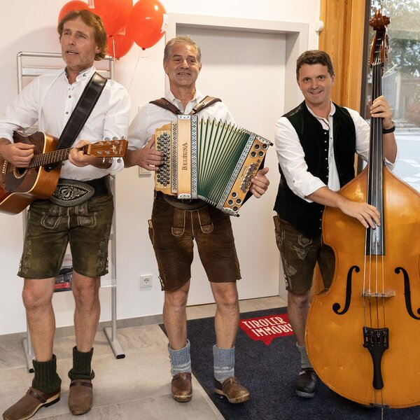 Martin Margreiter, Leiter des Geschäftsbereichs Hausverwaltung, führt den neuen Standort Wiesing. Mit ihm sind Julian Kellner und Gerda Rinner für unsere Kunden vor Ort. Sie begrüßten gemeinsam mit den Geschäftsführern Stefan Kaiserer und Alfred Thaler zahlreiche Gäste anlässlich der Eröffnung.