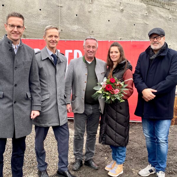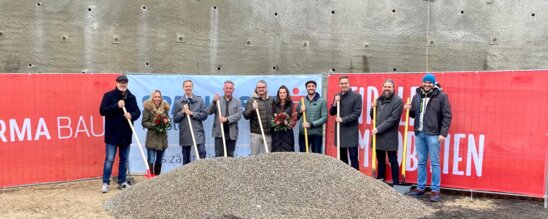 Beim Spatenstich dabei waren u.a.: Isabella Schatzlmair mit Christoph Kecht, Melanie Prichmoser, Josef Hauser (Forma Bau GmbH), Architekt Markus Tauber, Andreas Ehrenstrasser (Bürgermeister Gemeinde Langkampfen), Michael Koller (Sparkasse Kufstein), Stefan Kaiserer (Geschäftsführer Tiroler Immobilien), Alfred Thaler (Geschäftsführer Tiroler Immobilien), Thomas Jenewein (Hausverwaltung Tiroler Immobilien), Martin Sieberer (Projektleiter Tiroler Immobilien), Roland Anrain (Projektleiter Tiroler Immobilien), Hannes Lottersberger (Prokurist Tiroler Immobilien) und Mario Tribus (Vertriebsleiter Tiroler Immobilien)