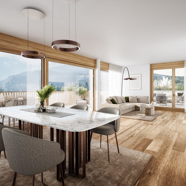 besticht durch moderne Architektur und großzügige Außenbereiche. Zu jeder Wohnung zählen ansprechende Terrassen und Balkone sowie verfügt das Erdgeschoss über großflächige Gärten. Das Objekt überzeugt zudem durch seine hochwertige Ausstattung und perfekt durchdachte Wohnkonzepte für Jung und Alt. Ein Highlight dieser Anlage ist die atemberaubende Dachgeschosswohnung mit Weitblick auf den Pendling sowie auf die Festung Kufstein. Die riesige Dachterrasse rundet dieses Schmuckstück perfekt ab und lädt zum Verweilen ein.