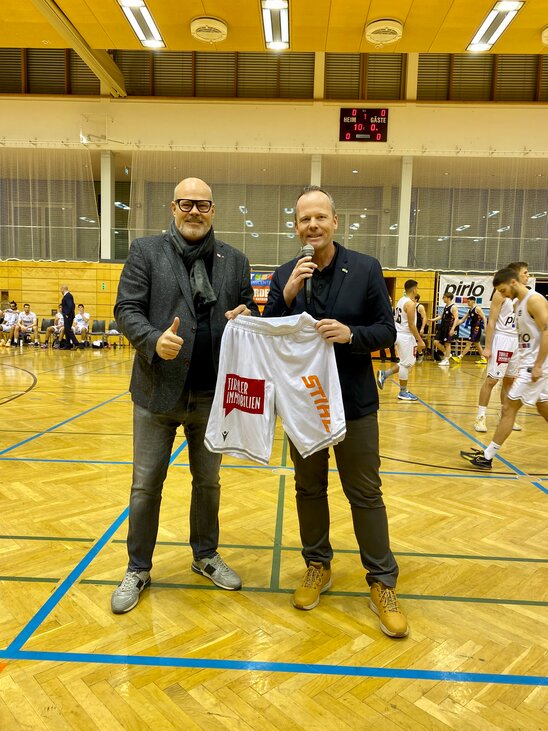 Unserem Stefan wurde dabei vor dem Spiel gegen Vienna United das neue Jersey überreicht und leitete im Anschluss durch den sogenannten „Jump-Ball“ den sportlichen Abend ein.