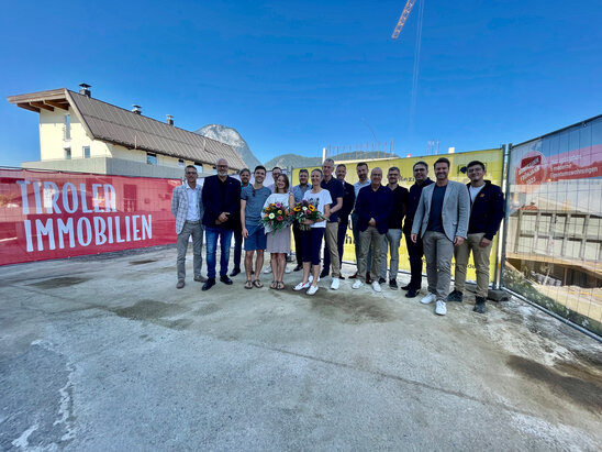 Unter strahlendem Sonnenschein konnte man in Anwesenheit des Vizebürgermeisters der Stadt Kufstein, Ing. Stefan Graf, MA, des Vertreters der finanzierenden Bank, Markus Guggenberger, der Architekten der Firma AO-Architekten DI Walter Niedrist und DI Christoph Moriggl sowie der ausführenden Baufirma rund um Anton Rieder und Bauleiter Philipp Andretter von der Firma Riederbau gemeinsam den Beginn dieses aufregenden Projekts feiern.