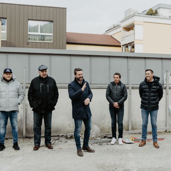 „Alles im Plan, wir freuen uns, dass es los geht“, verkündeten die Bauherren des neuen Wohn- und Geschäftsgebäudes in der Kufsteiner Marktgasse Michael und Karl Pilger von der PILGER Immo GmbH am Montag, anlässlich des Spatenstichs mit den am Bau beteiligten Professionisten ihres Projekts im Zentrum von Kufstein. Beim Spatenstich mit dabei waren u.a.: Peter Hechenblaickner (Raiffeisen Bezirksbank Kufstein), Architekt Joseph Rappl (JR Architektur ZT GmbH), Michael Pilger (PILGER Immo GmbH), Bürgermeister Martin Krumschnabel, Karl Pilger (PILGER Immo GmbH), Christian Brunner (CARMA GmbH), Georg Webhofer (PORR AG), Mario Tribus (Vertriebsleiter Tiroler Immobilien).