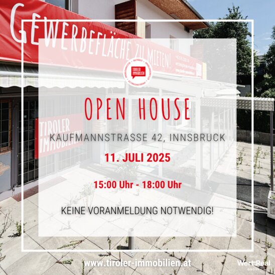 Am Freitag, den 11. Juli 2025, laden wir Sie herzlich zu einer freien Besichtigung unserer Geschäftsfläche in der Kaufmannstraße 42 in Innsbruck (Pradl) ein. Zwischen 15:00 und 18:00 Uhr haben Sie die Möglichkeit, die Immobilie ganz ohne Anmeldung zu besichtigen und sich direkt vor Ort ein Bild zu machen.